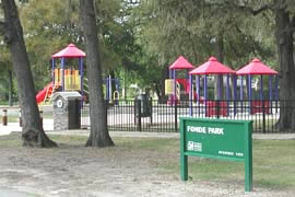 Fonde Park - On Saturday, November 4, 2006, Houston Parks and Recreation Department rededicated southeast Houston’s Fonde Park. Located at 5500 Carrollton and accessible from 2500 Hansford, at its opposite end, the 12.7-acre park was acquired by the city in 1950. The park’s name honors Miss Corinne Fonde [Rootsweb] (1883-1950), a long-time administrator of the Recreation Department