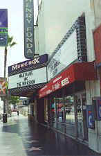 and concert acts including Adam Ant and Tori Amos. Opened as the Music Box, this theater went through several owners and corresponding name changes. Before being renamed as the Henry Fonda Theater, it became the Fox (not the Fox at Hollywood and Wilcox, which was the old Iris Theatre) and then the Pix Theater. When the theater was still known as the Pix, it had a really nice neon marquee. The Pix was the movie house that premiered "Jaws" on Hollywood Boulevard in 1975. A year later they showed "Rocky". Not a very large theater but it showed many blockbuster's in the 70's before becoming a live venue. [Cinema Treasures] [Google Map] |
