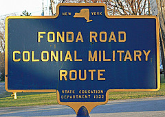 | Fonda, New York, USA (Village; Montgomery Co.; Population: 1,007; 42º57'N 74º22'W; Zip Code 12068; Elev. 298 ft.) E central N.Y., on Mohawk R., and the Barge Canal, and 10 mi/16 km W of Amsterdam; Formerly a freight transfer point on the N.Y. Central RR. Mfg. of aluminum prods., apparel, and textiles. Inc. 1850. Name origin - named after Douw Jellis Fonda (1700-1780) in 1850. (Note: A nearby town was once called Fonda's Bush, but is now Broadalbin, Fulton Co., New York). Fonda Speedway is a 1/2 mile dirt oval, located at the Montgomery County Fairgrounds in Fonda, NY. Racing at Fonda Speedway started in 1927; 6 events were held from 1927 to 1938. Racing began in earnest in the late 40s. A 1/8th mile drag strip was added in 1957, and was apparently used through 1968. Shirley Muldowney's drag racing career started on this strip in 1958. [Google Map] |